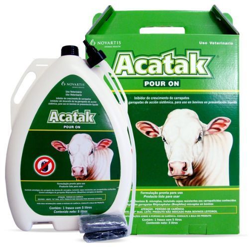 Controle estratégico: Nos locais onde a epidemiologia dos carrapatos é bem conhecida, ACATAK Pour-On torna-se o produto ideal para o controle estratégico deste parasita. Nestes casos, a aplicação de ACATAK Pour-On algumas semanas antes do inicio de infestações sazonais, impede o surgimento dos picos de infestação subseqüentes, responsáveis pelos altos índices de parasitismo no início da temporada. O tratamento estratégico, quando corretamente utilizado, permite que, com apenas um ou dois tratamentos se mantenha os animais livres de carrapatos. O tratamento estratégico requer que todos os animais da pastagem sejam tratados e que permaneçam sempre na mesma pastagem.