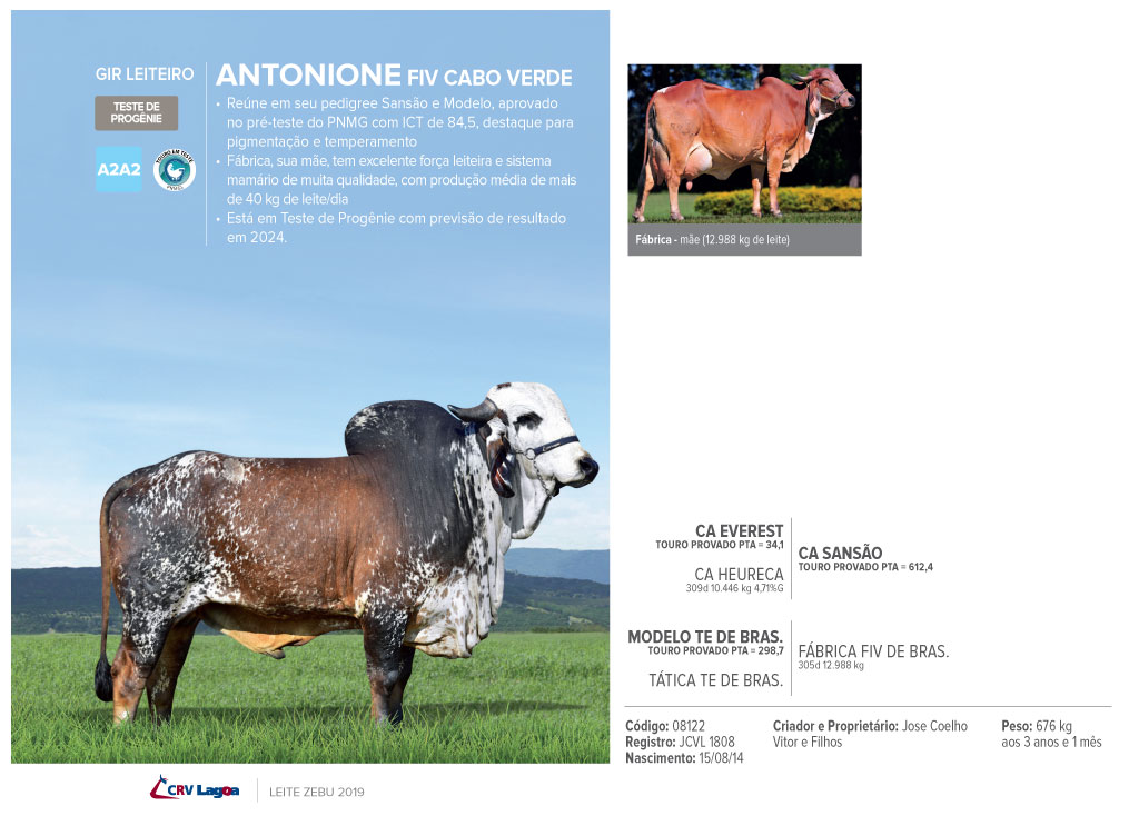 Reúne em seu pedigree Sansão e Modelo, aprovado no pré-teste do PNMG com ICT de 84,5, destaque para pigmentação e temperamento