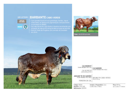 • Sua mãe, Bruna FIV Cabo Verde, é doadora reconhecida com produção de mais de 30 mil kg de leite ao longo de sua vida;