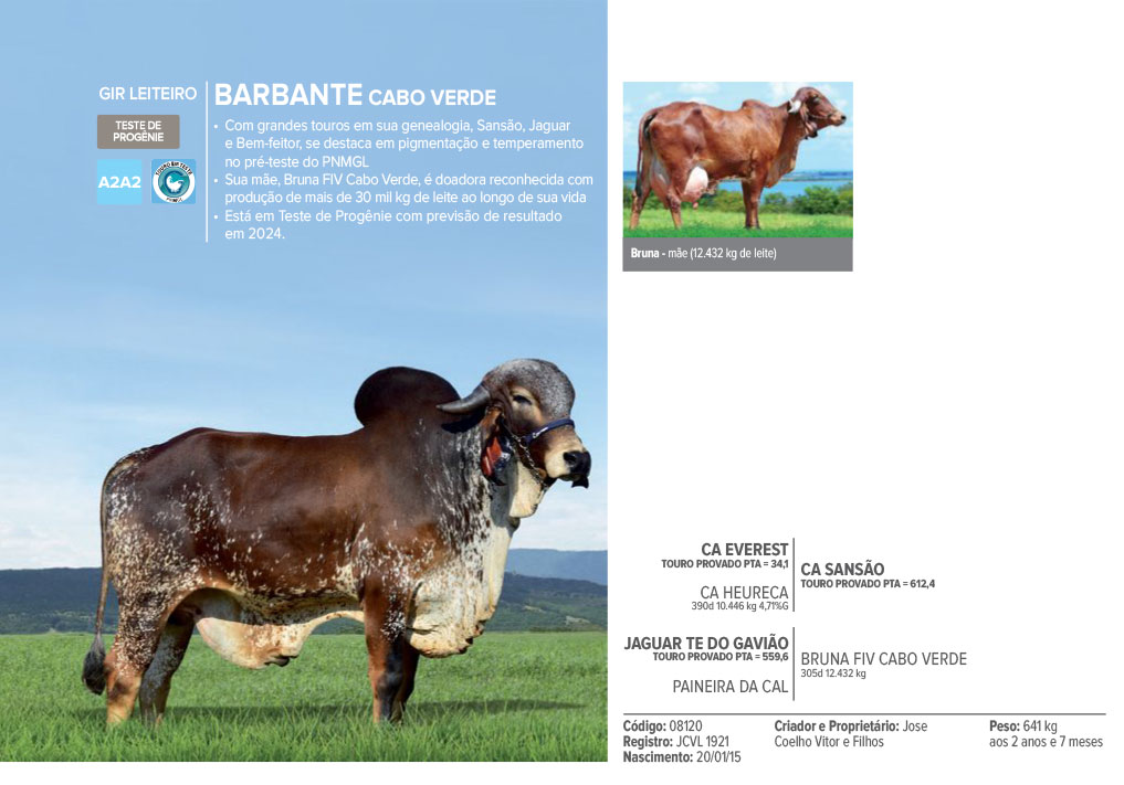 Sua mãe, Bruna FIV Cabo Verde, é doadora reconhecida com produção de mais de 30 mil kg de leite ao longo de sua vida;