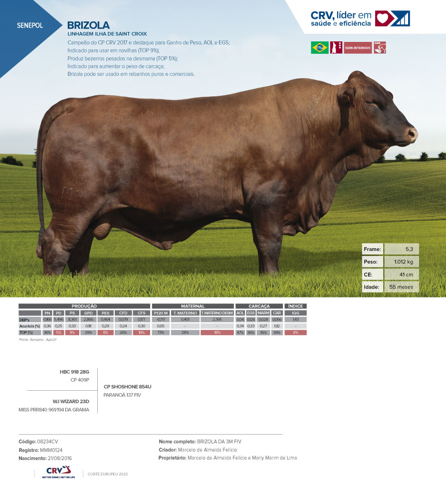 Brizola pode ser usado em rebanhos puros e comerciais;
