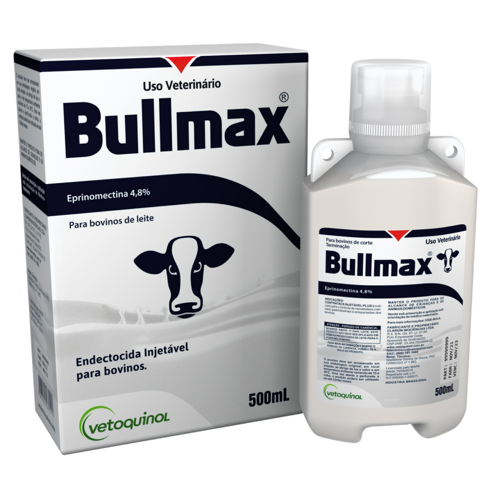 Bullmax® é um endectocida injetável indicado para o tratamento e controle das parasitoses bovinas causadas por nemátodeos (vermes) gastrintestinais, miíases (Cochliomyia hominivorax), moscas-dos-chifres (Haematobia irritans) e carrapatos (Rhipicephalus (Boophilus) microplus).
