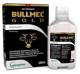 BULLMEC GOLD é indicado para o tratamento e controle das parasitoses bovinas causadas por verminoses gastrintestinais, miíases (bicheiras), bernes e como auxiliar no controle de carrapatos*. Vermes gastrintestinais: Bunostomum phlebotomum, Cooperia punctata, Haemonchus placei, Oesophagostomum radiatum, Ostertagia ostertagi e Trichostrongylus axei. Miíases (bicheiras): Cochliomyia hominivorax. Bernes: Dermatobia hominis. Carrapatos*: Rhipicephalus (Boophilus) microplus. *Cepas sensíveis à ivermectina.