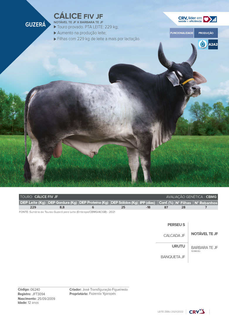 Touro provado. PTA LEITE: 229 kg;