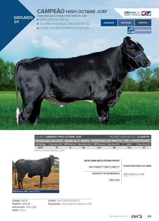 Linhagem: STANTONS HIGH OCTANE X 1450 ESPELHO JCRF;