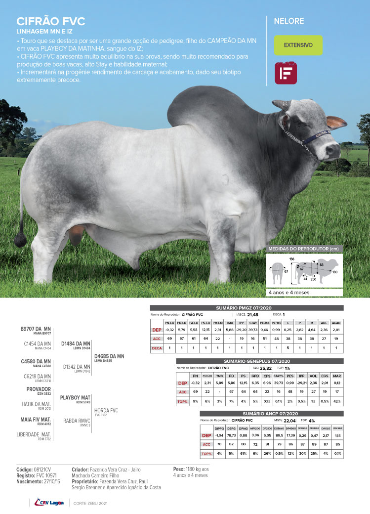 Cifrão FVC é líder de vendas dentro da CRV, filho de Campeão da MN em vaca Playboy MAT, excelente opção de pedigree.