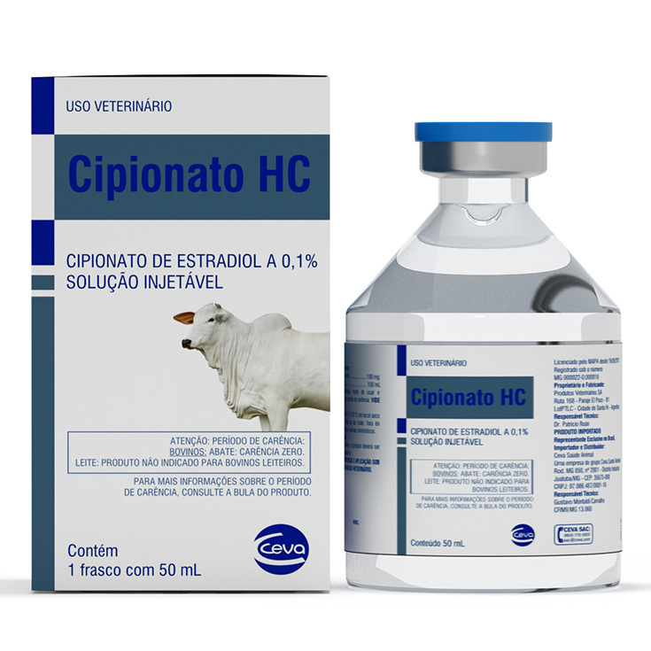 Para sincronização da ovulação em IATF, administrar 1 mL (1 mg) de CIPIONATO HC por via intramuscular no momento da retirada do dispositivo de progesterona e aplicar a prostaglandina.