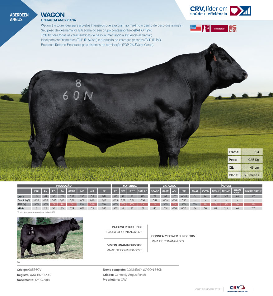Wagon é o touro ideal para projetos intensivos que exploram ao máximo o ganho de peso dos animais;