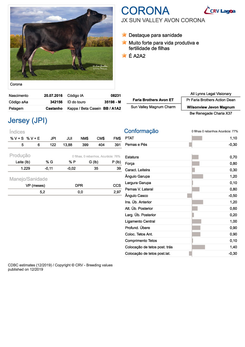 Linhagem: JX SUN VALLEY AVON CORONA;
