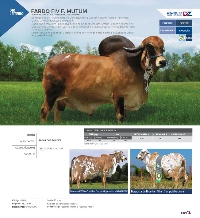 Genealogia aberta, reunindo Radar e Dengosa, Grande Campeã Nacional, Fardo foi Reservado Grande Campeão ExpoZebu e Megaleite;