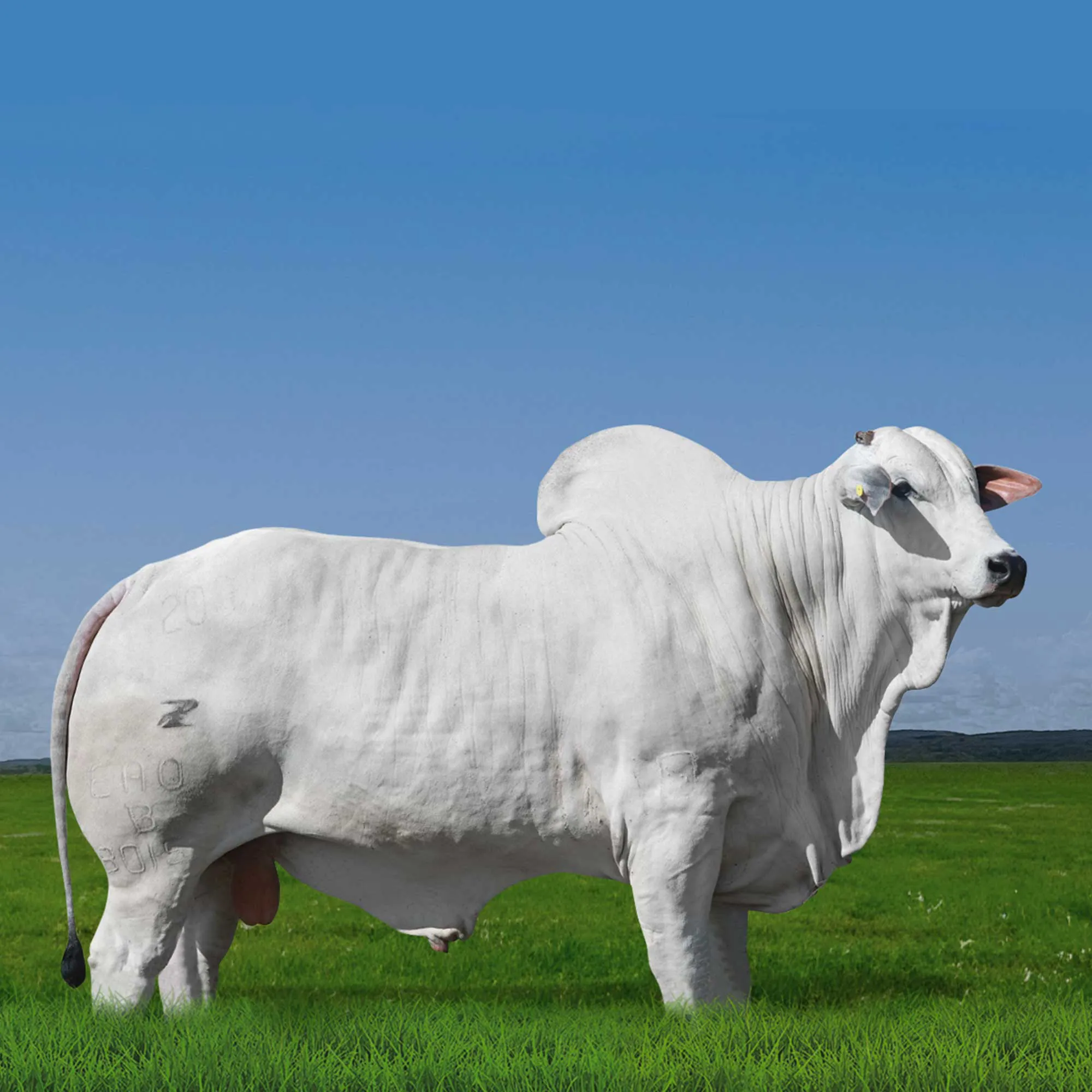 Touro jovem que apresenta carcaça com muita musculatura e biotipo precoce, corroborando com suas avaliações genéticas;