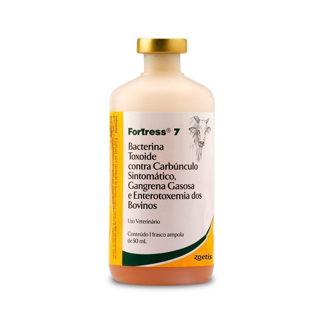 Vacina Zoetis Fortress 7 é indicada para vacinação de bovinos sadios como um dos componentes da prevenção contra doenças causadas por Clostridium chauvoei, C. novyi, C. septicum, C. sordelli e C. perfringens, tipos C e D. Embora as doenças causadas por C. perfringens tipo B não sejam um problema significativo em muitos locais, imunidade também é provida, por meio do toxoide beta do tipo C e do toxoide épsilon do tipo D contidos nesta vacina.