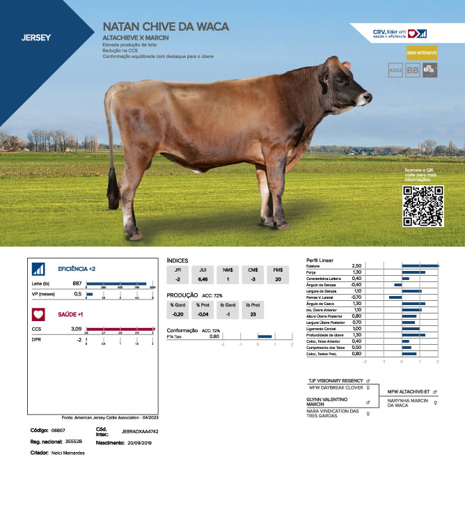 Touro com elevada produção de leite, conformação equilibrada, excelente úbere e tipo.