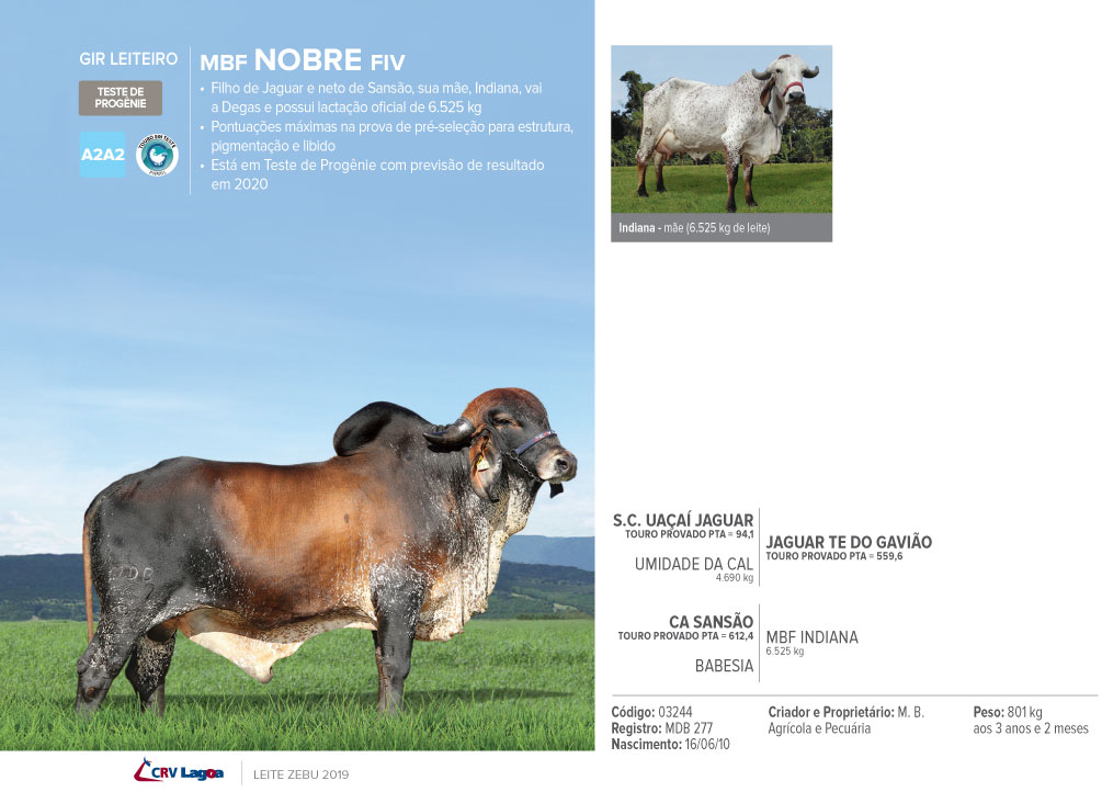 Filho de Jaguar e neto de Sansão, sua mãe, Indiana, vai a Degas e possui lactação oficial de 6.525 kg;