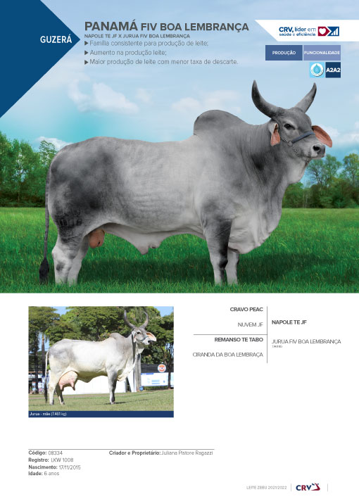 • Sua mãe é a 2ª Melhor Fêmea da Raça Guzerá, com DEP para produção de leite de 718 kg e lactação de 7.461 kg