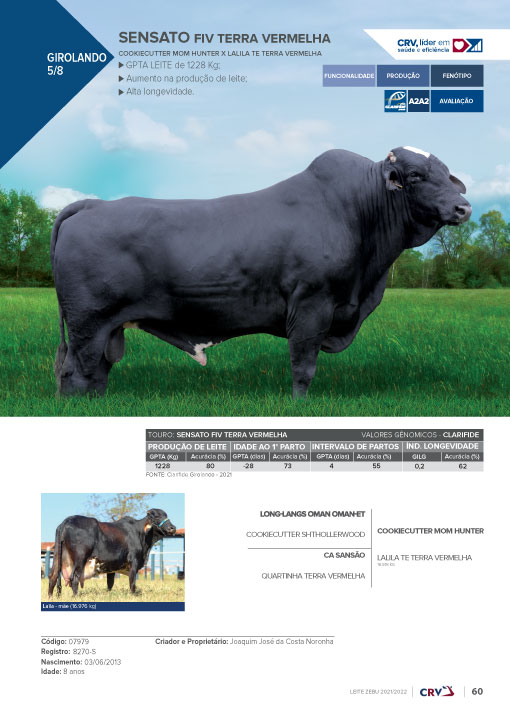 • Girolando 5/8 de uma das famílias mais consistentes da raça, aprovado na 4ª prova de pré-seleção com destaque para temperamento;