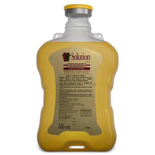 SOLUTION 3,5%, associação de Ivermectina + Abamectina, é um endectocida para bovinos, que combate os nematódeos gastrintestinais, tais como: Haemonchus placei, Cooperia punctata, Oesophagostomum radiatum e Trichostrongylus axei, tem ação bernicida (Larvas de Dermatobia hominis) e auxilia no controle do carrapato dos bovinos, Rhipicephalus (Boophilus) microplus.
