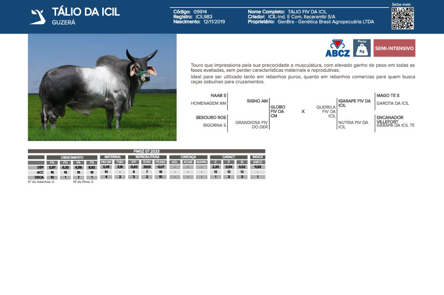 Touro que impressiona pela sua precocidade e musculatura, com elevado ganho de peso em todas as fases avaliadas, sem perder características maternais e reprodutivas;