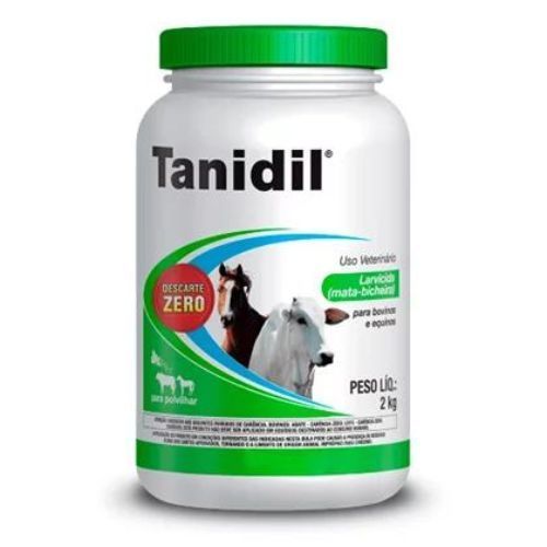 Tanidil é especialmente indicado para o tratamento e prevenção das miíases (bicheiras) em bovinos, equinos, suínos e ovinos, causadas pelas larvas da mosca Cochliomyia hominivorax. Tanidil protege escoriações, feridas de castração e descorna, feridas cirúrgicas e de decúbito, feridas de esquila, pisaduras e o umbigo dos recém-nascidos contra os insetos e suas larvas. Tanidil também é indicado contra o carrapato da orelha dos equinos, Anocentor nitens. A coloração verde é passageira e permite identificar os animais tratados. Tanidil não mancha a lã.