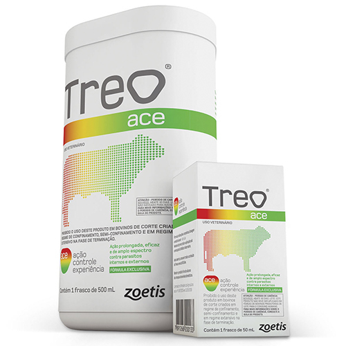 Um tratamento com Treo ACE controla, ao mesmo tempo, uma ampla variedade de vermes redondos gastrontestinais e pulmonares e ectoparasitos que comprometem a saúde e a produtividade dos bovinos. Treo ACE possui ampla margem de segurança, é tolerado e fácil de aplicar.
