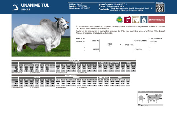 Unânime TUL é touro provado da Tulipa Agropecuária, filho de Fred TUL em vaca CFM Orgulho e com influência da Paquetá;