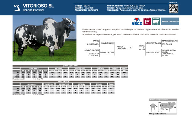 Destaque na prova de ganho de peso da Embrapa de Goiânia. Figura entre os líderes de vendas dentro da CRV;