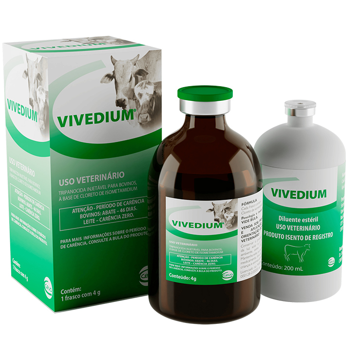 A dose recomendada é 0,5 mg/kg. Animais tratados preventivamente com VIVEDIUM que desenvolvem forma clínica de tripanossomíase podem ser tratados com produtos à base de diminazeno, com o objetivo de evitar o desenvolvimento de cepas resistentes.