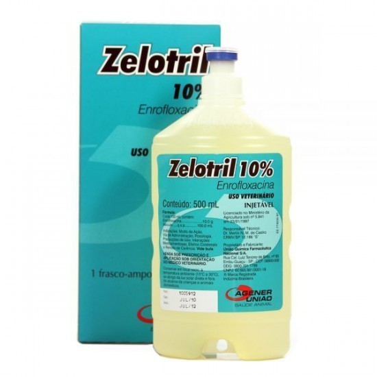Zelotril 10% é um produto injetável, à base de enrofloxacina, indicado para bovinos, suínos e cães. A enrofloxacina é uma fluorquinolona de 2ª geração amplamente utilizada em Medicina Veterinária. As quinolonas atuam como fármacos inibidores da enzima bacteriana DNA-girase, que constitui o ponto central do processo de replicação bacteriano, provocando a morte dos microrganismos. Uma característica farmacológica das quinolonas que contribui para sua eficácia é o efeito pós-antibiótico. Assim, mesmo que os níveis do fármaco tenham declinado na circulação, as moléculas de quinolona retidas nas células de defesa asseguram concentração suficiente para eliminar as bactérias. A enrofloxacina tem amplo espectro de ação e difunde-se rapidamente pelos tecidos, sendo excretada na bile e na urina em elevadas concentrações na forma ativa.